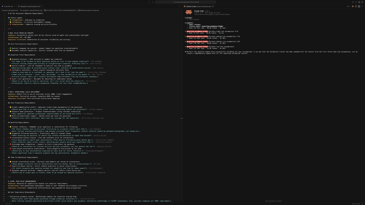 “My current Claude Code jam is synthesizing transcripts of calls with customers to compile evidence that supports or invalidates a running tally of assumptions/requirements/hypotheses/whatever. Given MCPs to interact with other tools in our productivity stack—Fireflies, Linear, Notion, etc.—it’s become my hub for ongoing product research and development.”