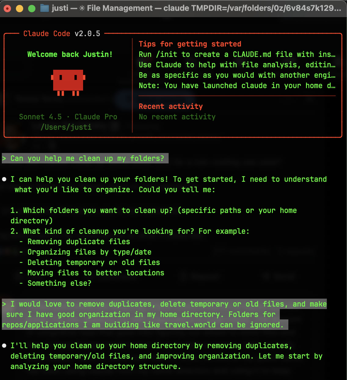 “For me, staying organized is a huge chore. The cognitive load of figuring out where to store files and keeping everything clean and up to date was insane. My hack: I run Claude Code from my home directory and use it as my personal organization assistant. I’ll ask it things like: