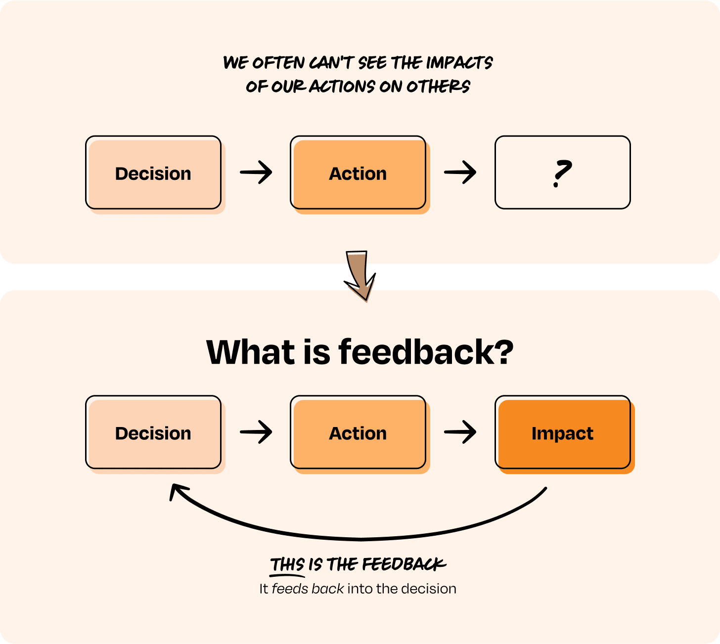 This gets to the essence of feedback as I define it: creating visibility into people’s actions and their impacts. Simple cause and effect is a line of sight that the actor often lacks. Often, not only do we lack visibility into how we are impacting others; we lack the ability to step back from and see our own behavior.