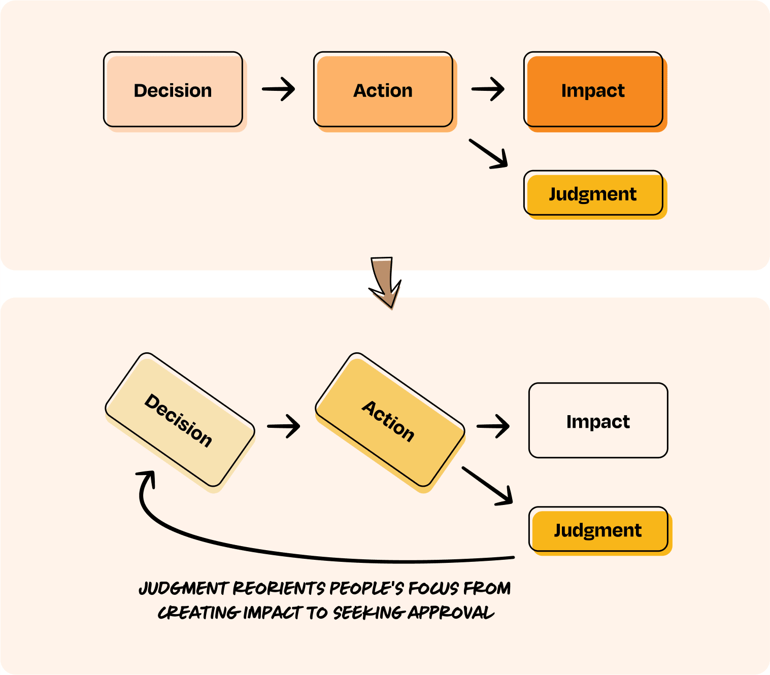 Even for well-practiced feedback masters, it can be tempting to deploy critical judgment’s close cousin, flattering judgment. Well-intentioned people might offer praise and compliments, like “You’re a rockstar PM” or “You’re so brilliant. You have such a gift,” to motivate or thank colleagues. But just as critical judgments can trigger defensiveness, flattering ones can destroy growth mindset, autonomy, and productivity, and foster people-pleasing.