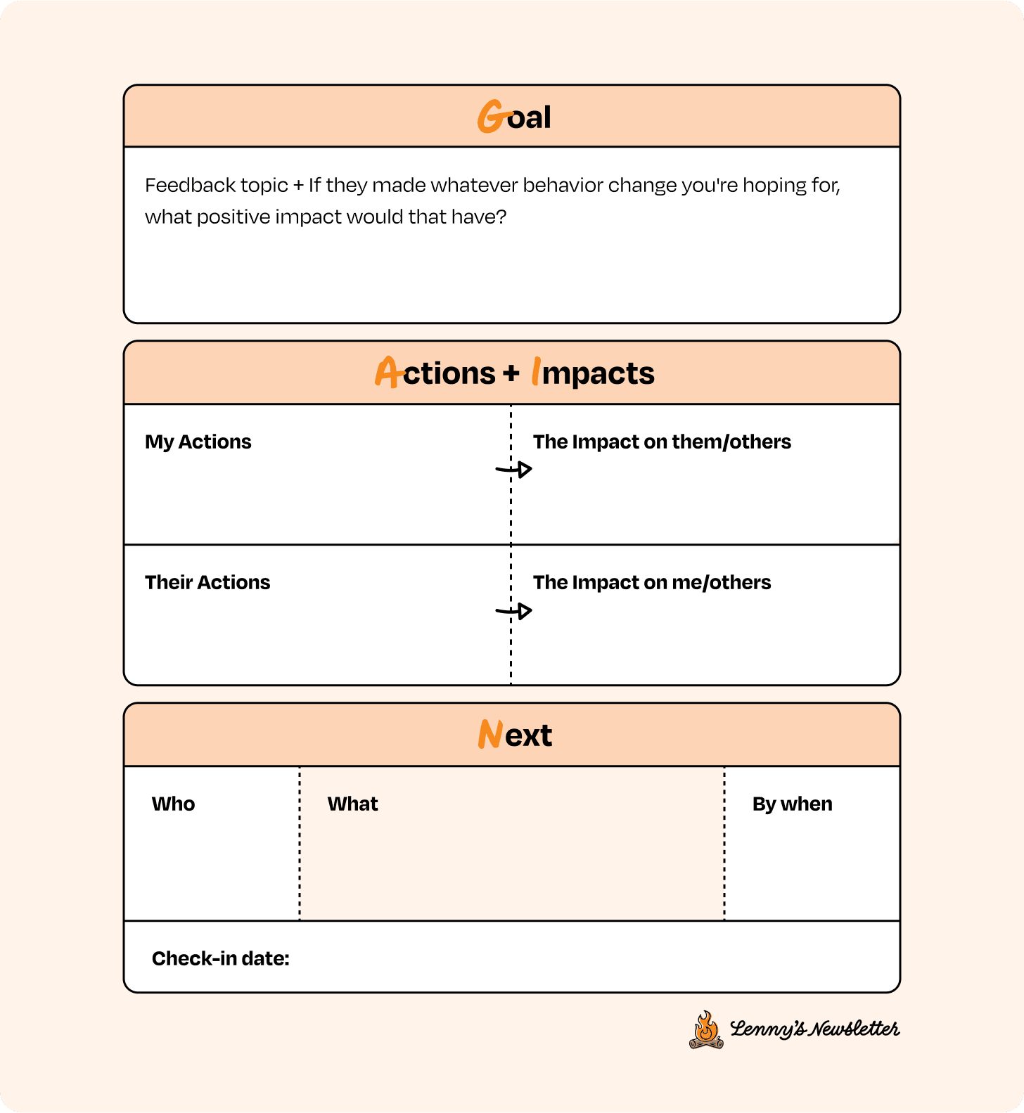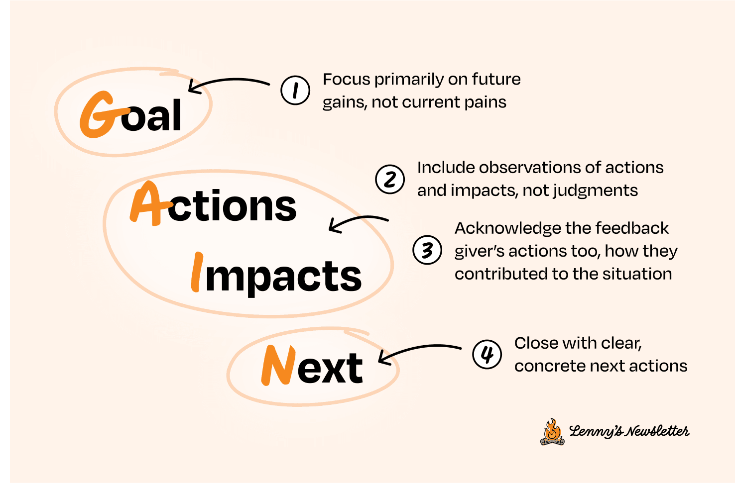 As Brian notes, people start to realize that the function of feedback isn’t just for behavior change. When shared with skill and engaged with vulnerability, a substantive feedback conversation builds immense trust, meaningful connection, and deep gratitude. (For example, many guests on Lenny’s Podcast and beyond rave about that exact impact that Sheryl Sandberg’s feedback had on them and their relationship with her.)
